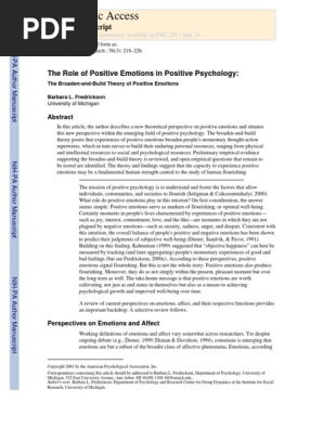 The Role Of Positive Emotions In Positive Psychology Fredrickson