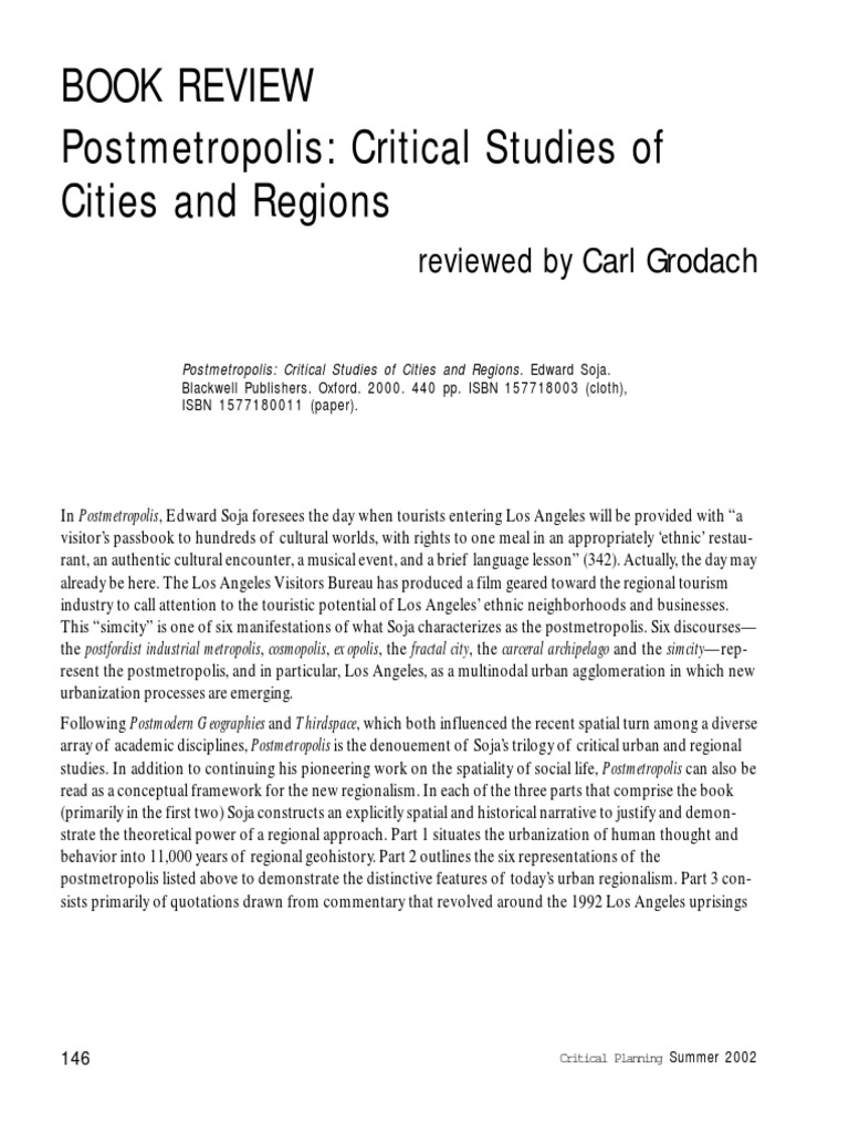 Postmetropolis critical studies of cities and regions pdf. Description this completes ed sojas trilogy on urban studies which began with postmodern geographies and continued with thirdspace. User review flag as inappropriate in his book postmetropolis. Journeys to los angeles and other real and imagined places by edward w. Interview with homi bhabha.