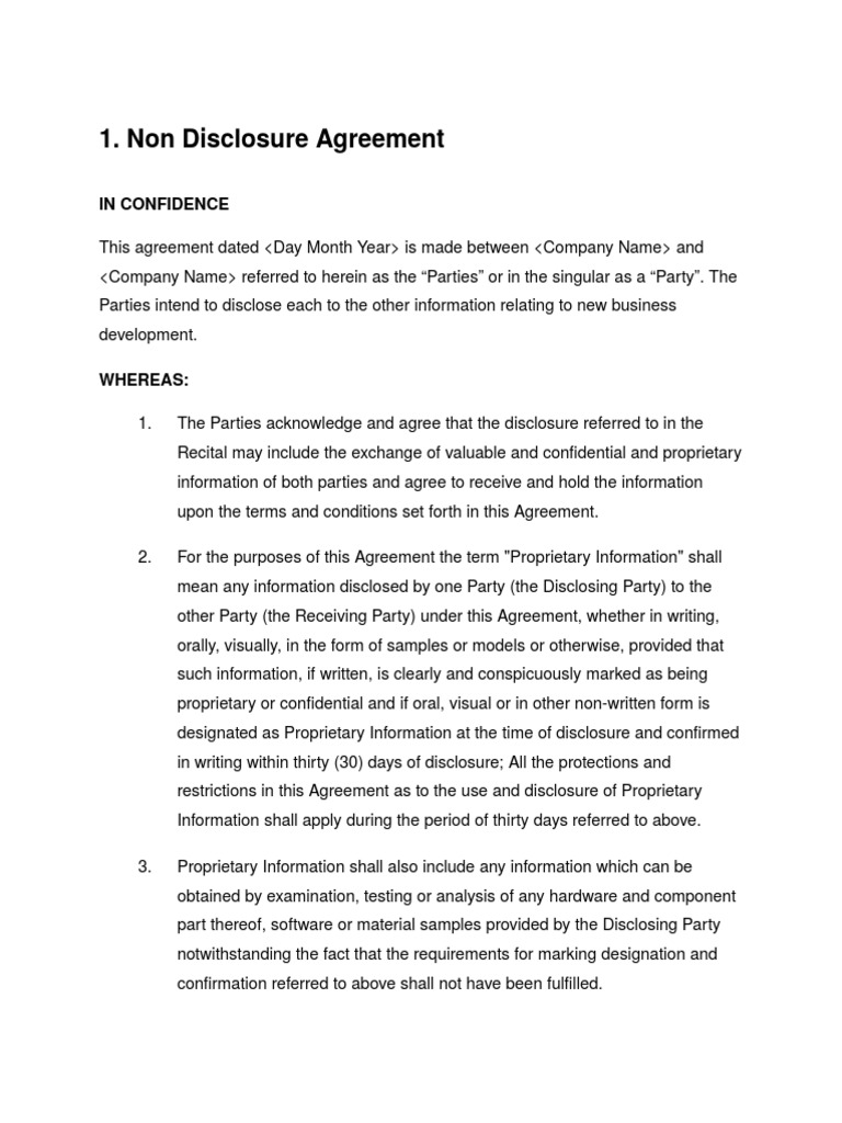 Free Patent Invention Non Disclosure Agreement Nda Pdf