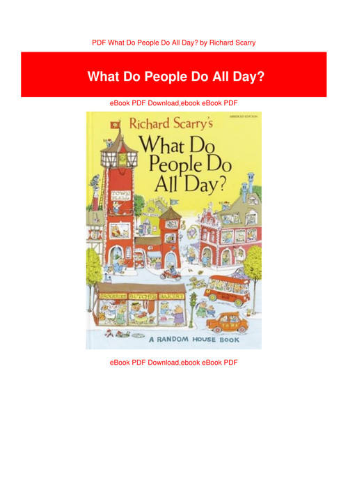Richard scarrys what do people do all day pdf. About richard scarrys what do people do all day. Stitches the rabbit tailor charlie the mouse baker zip the raccoon postman alfalfa the goat farmer sawdust the cat carpenter as well as assorted pigs bears foxes and numerous other. Full of fun and adventure this classic picture book will keep the attention of little readers from page to page as they find out how construction workers fire fighters farmers doctors and more help busytown run smoothly each and every day. Free download or read online what do people do all day.