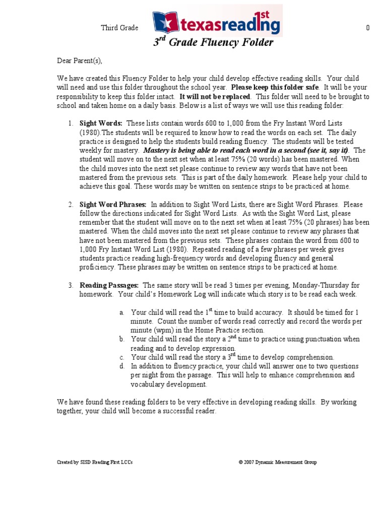 Sisd first lccs first grade fluency pdf. Nd grade fluency folder flagstaff high school. If you dont see any interesting for you use our search form on bottom. Nd grade fluency folder m wilson. Third grade 0 created by sisd reading first lccs c 2007 dynamic measurement group.