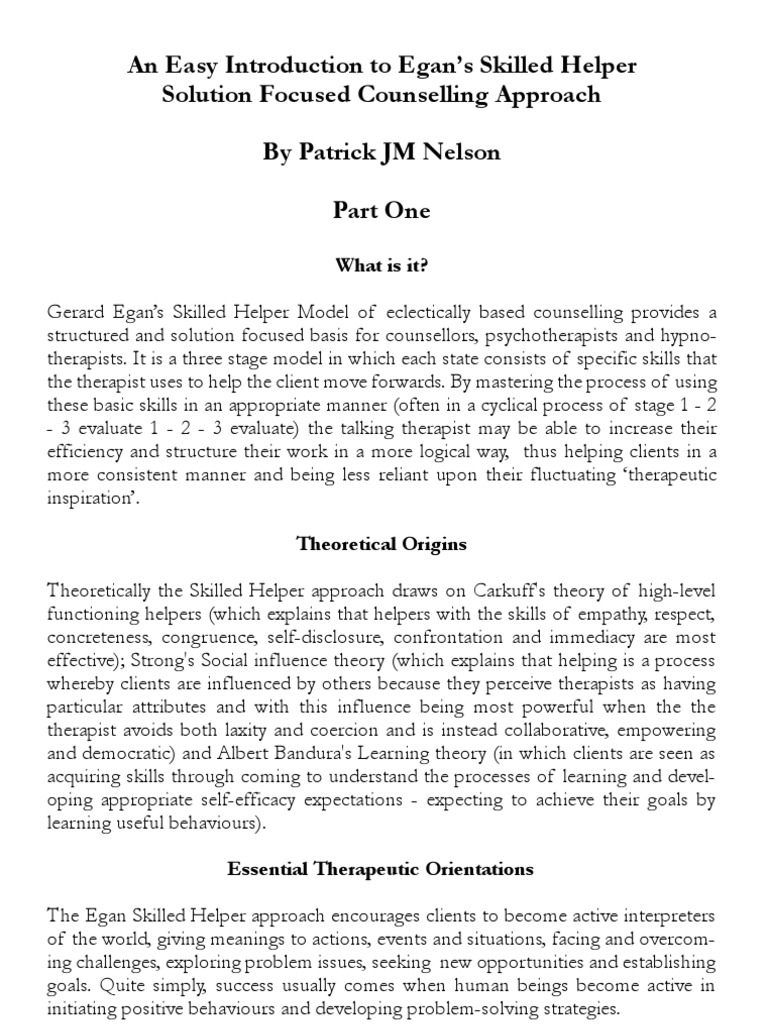 Gerard egan born 1930 introduced the skilled helper model in 1975 for indiv iduals to solve problems and develop opportunities. Exercises in helping skills book summary. A client centred approach teaches students a proven step by step counselling process to enable them to become confident and competent helpersinternationally recognised for its emphasis on the. To identify problems b.