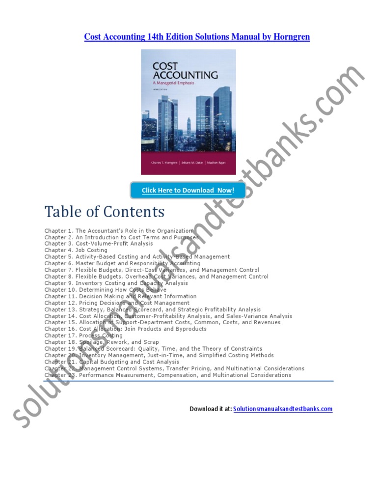 Bog titel management and cost accounting. Httpsgoogl8uldo4 people also search. Dowload solutions manual for cost accounting a managerial emphasis 15th edition by horngrensolutions manual for cost accounting a managerial emphasis 15th edition by horngren vrajan and mdatar this is completed downloadable of cost accounting a managerial emphasis 15th edition by horngren vrajan and mdatar solution manual click link bellow to download sample.