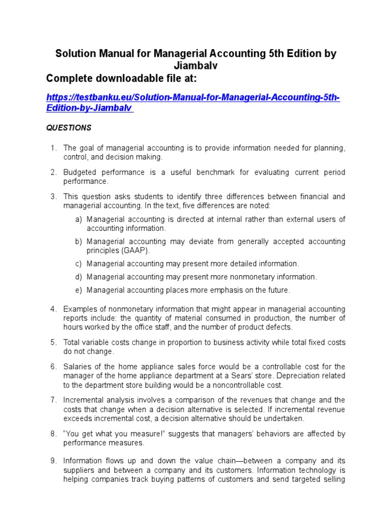Managerial Accounting 5th Edition Jiambalvo Solutions Manual